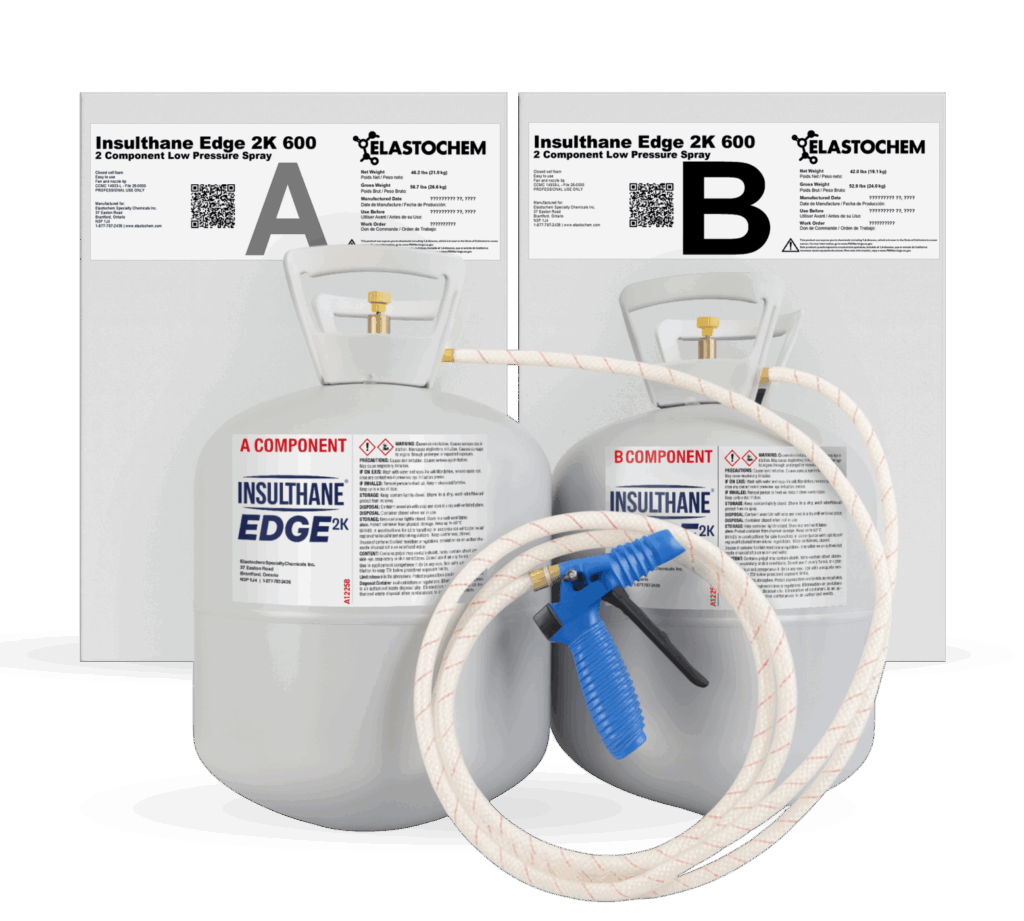 INSULTHANE® EDGE 2K 600 is a two-component, low-pressure spray polyurethane foam kit designed for fast, simple touch-ups on the jobsite. This medium-density system is ideal for small service calls, post-inspection corrections, and precision detailing. It delivers